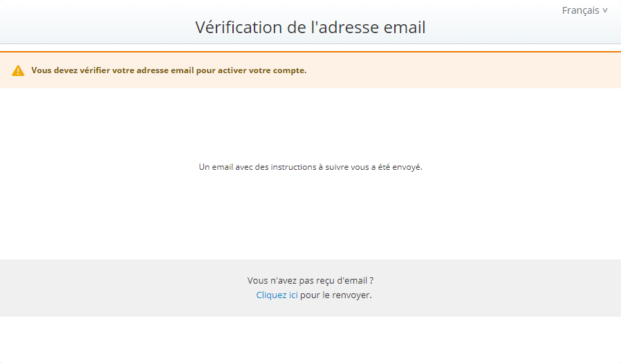 - - Un écran s’affiche pour vous inviter à vérifier votre adresse email pour activer votre compte.