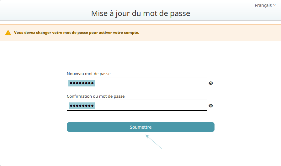 - - Je me reconnecte pour valider mes modifications, en saisissant mon identifiant (saisi à l’Étape 1) et mon nouveau mot de passe.