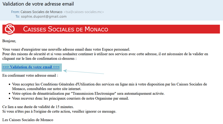 - - Je clique sur le lien de validation dans l’email que j’ai reçu "Vérification de l’adresse email".